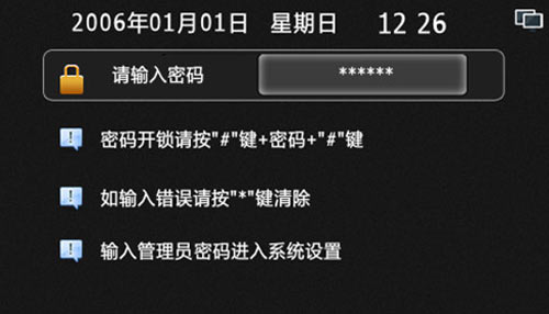 3) 住戶密碼開鎖。默認(rèn)為禁用,需物業(yè)人員通過工程設(shè)置開啟權(quán)限才能使用,并且用戶的開鎖密碼默認(rèn)為無,需在室內(nèi)機(jī)上設(shè)置才能使用。操作方法:“*”+房號(hào)+“#”+“住戶開鎖密碼”+“#”,例如101住戶的開鎖密碼為123456,則輸入“*”+101+“#”+123456+“#”即可打開單元門。如圖3.3.3: