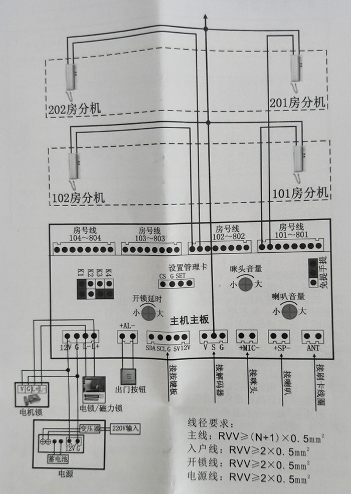注1:分機響鈴時得在提機通話的狀態(tài)下按開鎖鍵才能打開門鎖;