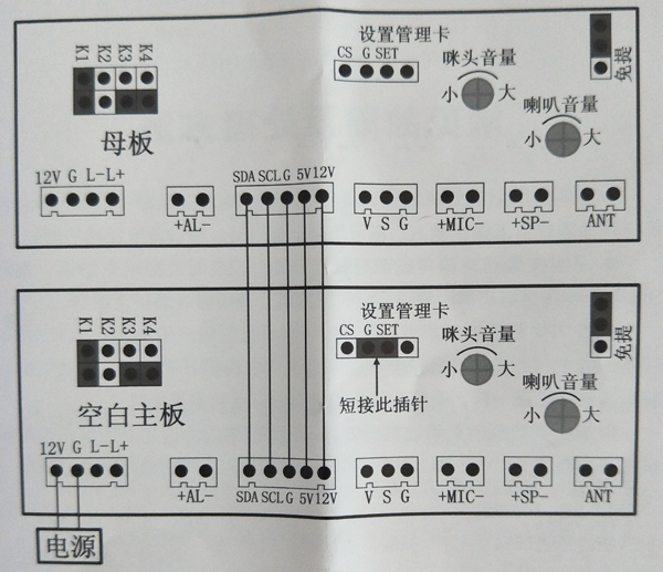 這個功能用于小區(qū)中有多臺門口機要求數(shù)據(jù)相同,這樣可以快速復制而不用每臺主機都得去設置卡和房號等。也可以用于更換主機板時把卡數(shù)據(jù)復制到新的主機板上,但是要嚴格按照操作步驟操作,否則會清除原來有卡數(shù)據(jù)的主機板。