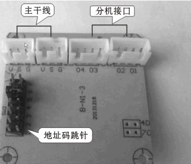 樓層和戶數(shù)符合標準,可直接通過設置解碼器地址碼跳針(1. 2.3.4、5. 6. 7插針)來設置房號,解碼器板子如下圖所示: