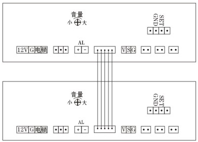 7、 數(shù)據(jù)復制: 斷電,撥掉主機按鍵板,用5P對插線插在按健板插座上,把2個主機板連接在起,如下圖所示。在目標板主板上供電,供電后在目標板上短路一下“GND和SET”跳針,聽到繼電器振動約10秒后停止數(shù)據(jù)即復制成功,這時2個主機板的卡數(shù)據(jù)相同,在多門口要求卡相同可以快速復制而不用每臺主機都用管理卡增加。